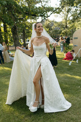 Under bistro lights, the couple shared their first dance outdoors, creating a magical moment under the stars. Anika then changed into a fun party dress that perfectly matched the lively reception vibe. The short dress, featuring a halter neckline, a fitted bodice, and flared skirt, had a satin-like finish and was paired with sneakers... ideal for dancing the night away in comfort and style.