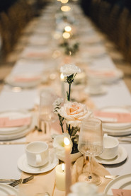 The reception was held at the stunning Human Rights Museum, where every detail of the decor contributed to an unforgettable atmosphere. The tablescape was an absolute showstopper, featuring minimalist floral arrangements with blush and ivory roses, carnations, and fresh greenery. The chic frog dishes, paired with glowing taper candles in pastel hues of blush and ivory, created a romantic ambiance that enhanced the elegance of the space. Neutral linens with a soft blush chiffon runner tied the look together, making for a Pinterest-worthy table.
