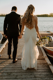 As the evening progressed, Kristin and Kevin took a moment to slip away with their talented photographer to capture stunning sunset photos on the dock. These beautiful images, set against the backdrop of the setting sun, perfectly encapsulated the romance and intimacy of their special day.